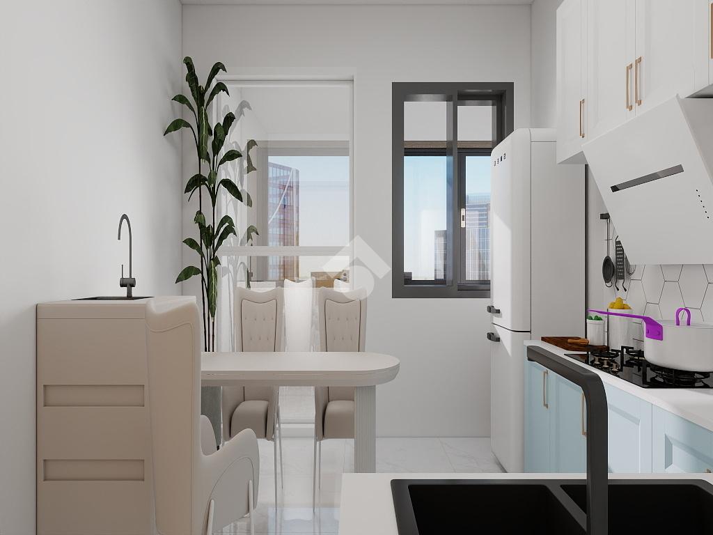 La zona giorno comprende una cucina funzionale separata da un soggiorno luminoso, ideale per momenti di relax.
