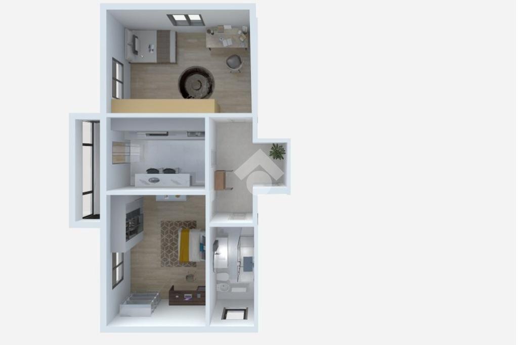 Al piano secondo, troviamo due appartamenti attualmente locati, saranno liberi ad aprile 2026 e sono composti da: ingresso, soggiorno, cucina, camera matrimoniale e bagno finestrato, ideale per coppie o studenti per una matratura di 67 mq.